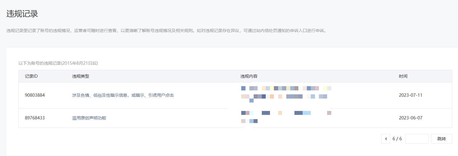 • 违规记录