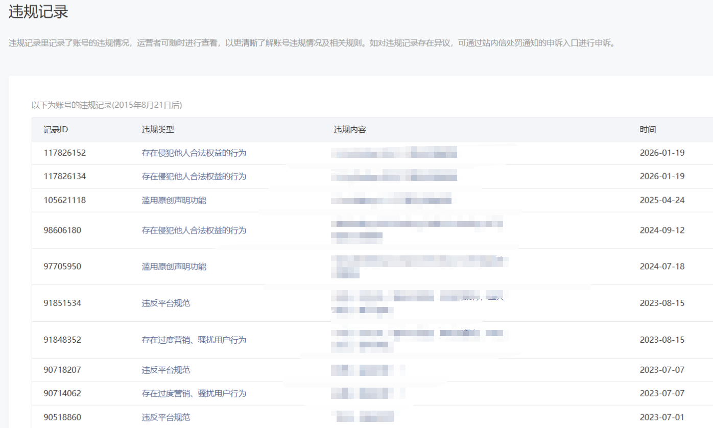 • 违规记录