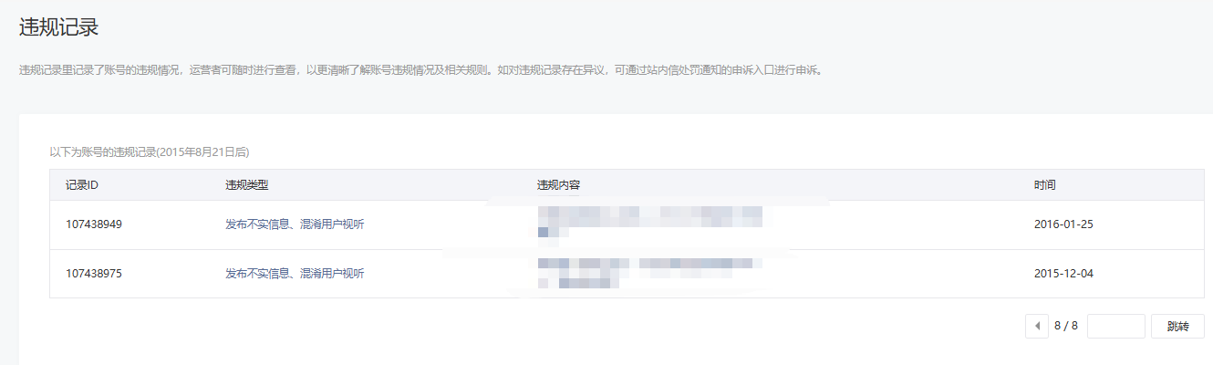 • 违规记录