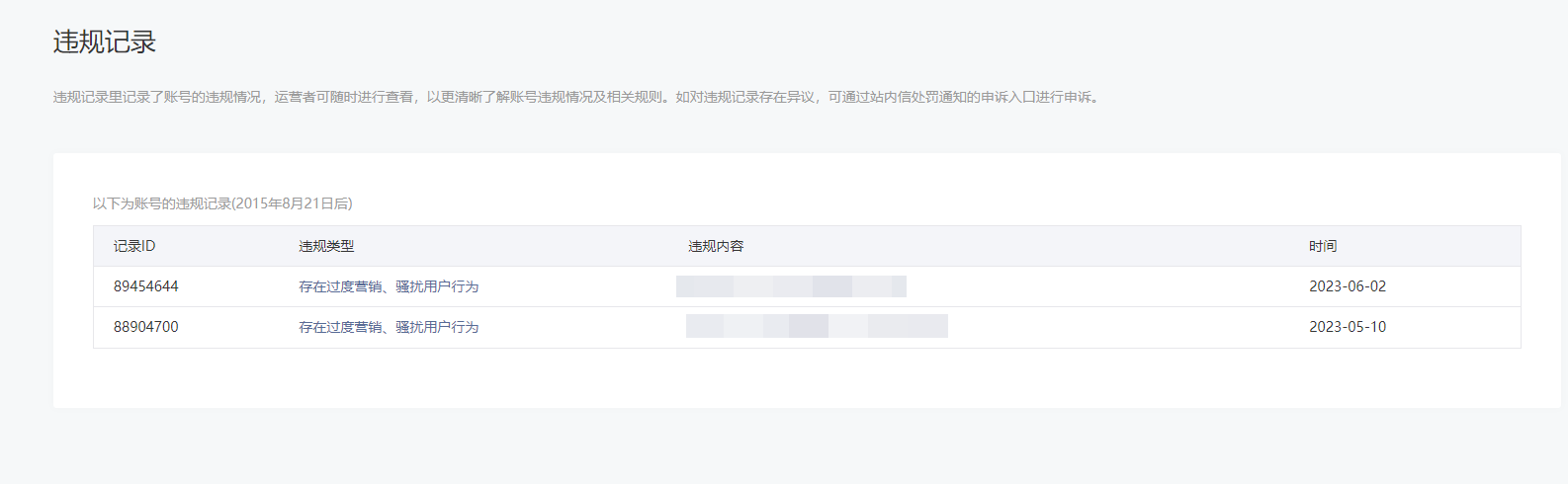 • 违规记录